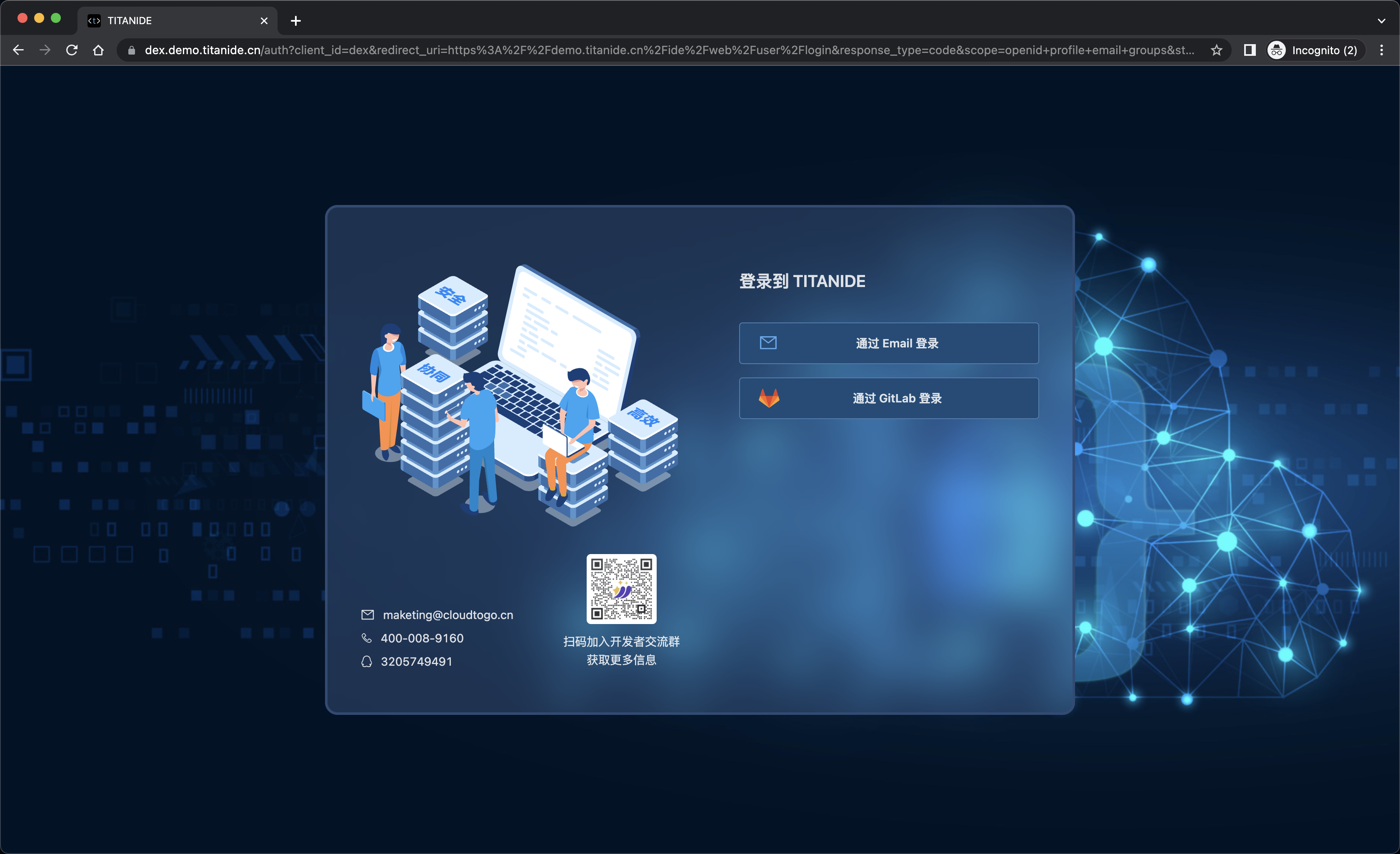 首先通过 GitLab ,两步验证登录到 [TitanIDE]。