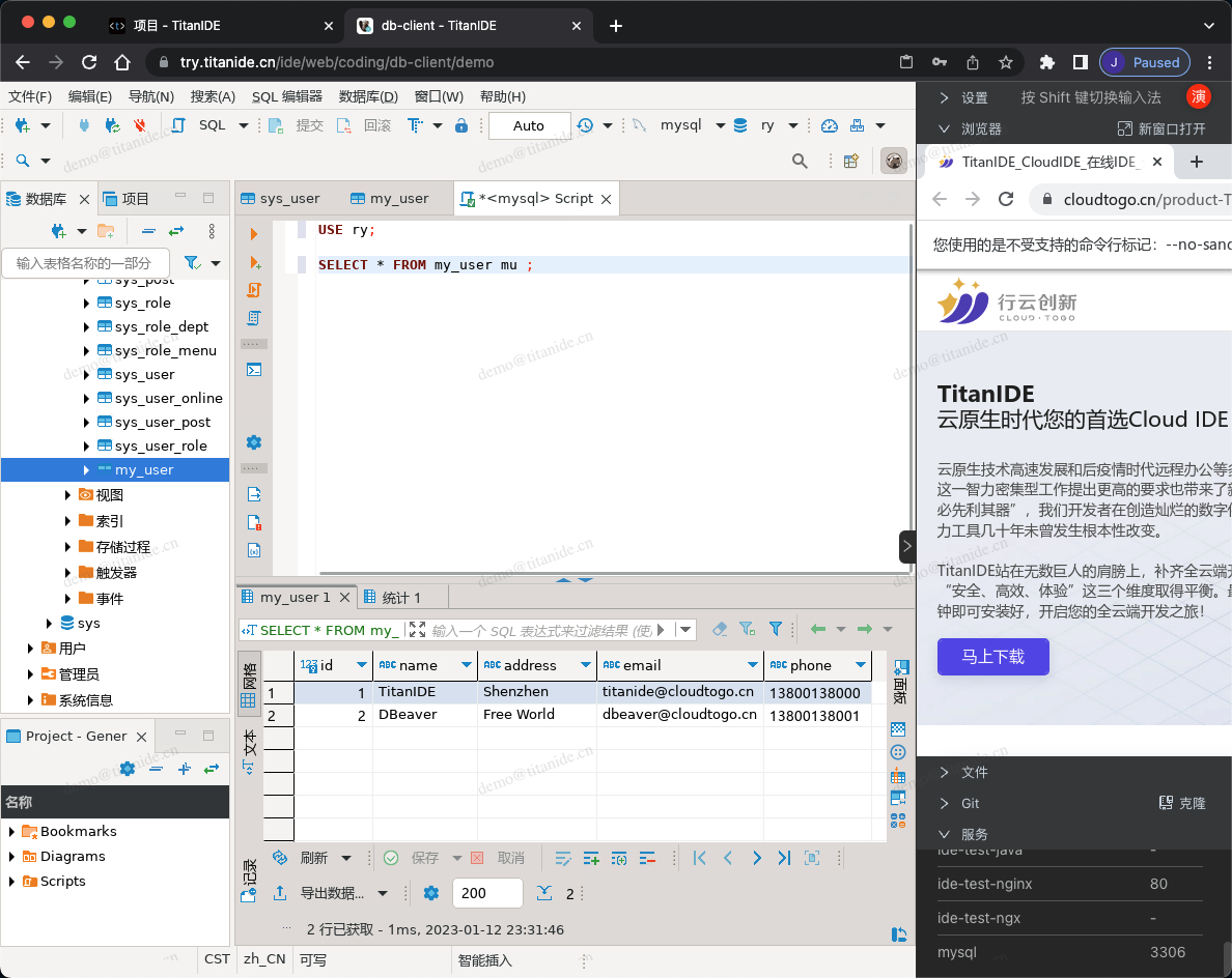 云端IDE系列教程8:TitanIDE 与 DBeaver 的爱情故事